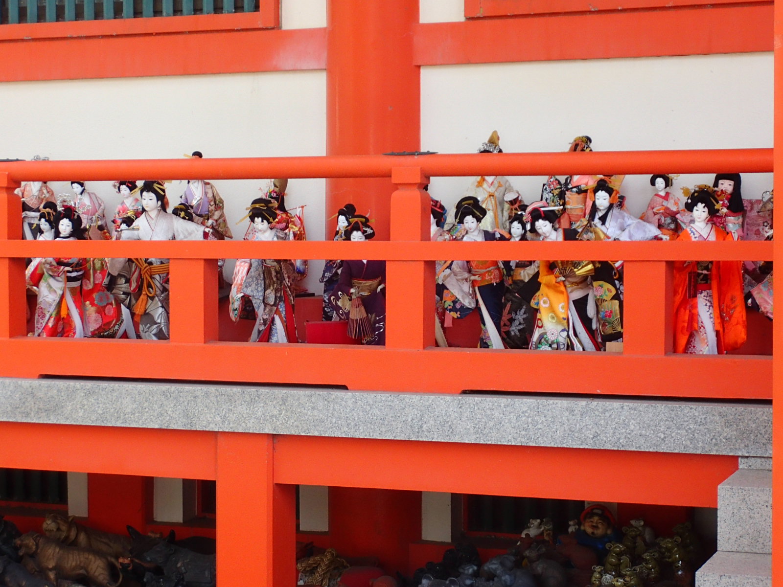 境内のたくさんの人形を見て一休み。